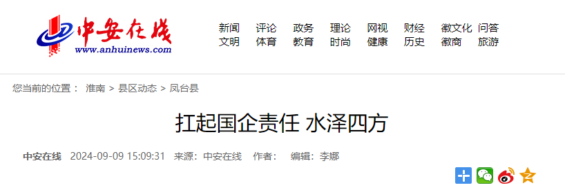 近日,安徽省省直重点新闻媒体中何在线以《扛起国企责任,水泽四方》为题,对凤台华水佰利乐有限责任公司夏季保供情况进行报道。